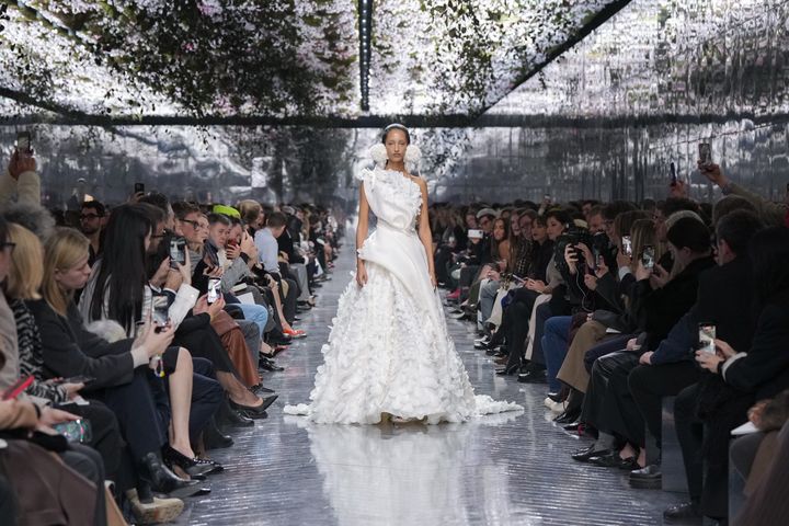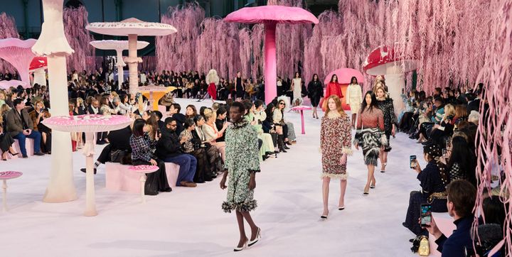新たなアーティスティック ディレクター、マチュー・ブレイジーのクチュールデビューを飾るショーには、あらゆる人たちの視線が向けられた。そのショーでブレイジーは、観客たちをおとぎ話の世界へといざなった。会場のグラン・パレには背の高いピンク色の柳の木と巨大なキノコが立ち並び、モデルたちは白雪姫のBGMが流れる中、その間を優雅に歩いた。