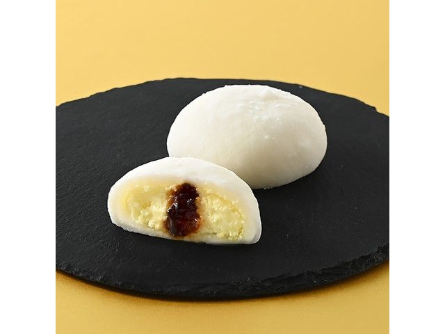 カスタードホイップとカラメルソース入りのプリン味で、ふわもち食感のチルド大福です。