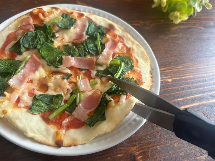 皿にのせ、キッチンばさみで切り分けたら、いただきま~す。