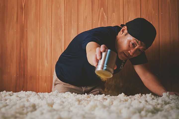 生酛純米酒用の竜王山田錦(65%精米)の放冷作業の様子