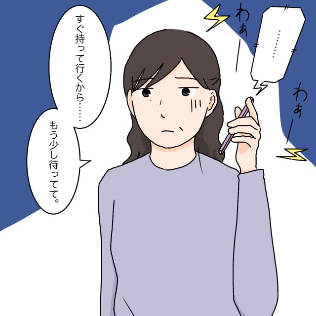 スマホの向こうで好き勝手に言い続ける義父に、すっかり気力を削がれたのでしょう。義母はげっそりとした表情でスマホを耳から離し、「すぐ持って行くから・・・もう少し待ってて」と力なく答えます。次々と突きつけられる理不尽な要求に、相当追い詰められているようでした。