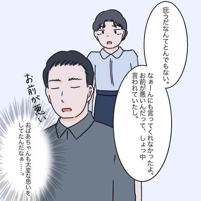 すると義祖母は、どこか悲しげな表情を浮かべながら「庇うだなんてとんでもない、なぁーんにも言ってくれなかったよ、お前が悪いんだってしょっちゅう言われていたし」と言いました。時代が時代だったから、義祖母も大変な思いをしたんでしょう。