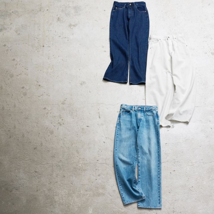 ベーシックなブルー、ネイビー、ブラックなどのほか、トレンドカラーが登場することもあり、さまざまな色に挑戦しやすいのが「ユニクロ」のいいところ。素敵世代が春夏に注目すべきカラーは、軽やかなホワイト系。また、おなじみのブルーのなかでも、微妙にウォッシュ加工を変えているものもあったりするので、色で迷ったら、複数買いしても後悔はないはず!