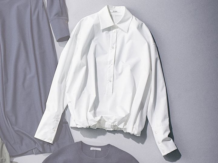 「長めのカフスや裾のギャザー、ディテールへのこだわりでありきたりじゃない感じが素敵。(スタイリスト竹村はま子さん)」