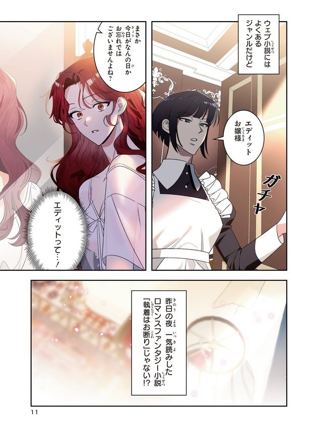 お金の無心に来た兄に突き飛ばされ、階段から転落した百合子。虚しい死の先に待っていたのは、ロマンスファンタジー小説『執着はお断り』の世界だった。しかも百合子が転生したのは、夫・キリアンに殺される運命の悪女・エディット。バッドエンドを回避するため嫁ぎ先に取り入ろうとするも、登場人物たちはみんな可憐なヒロイン・リゼに夢中で…。エディットは待ち受ける運命を変えられるのか? 超話題ロマンスファンタジー『よくある令嬢転生だと思ったのに』を、3月末までの期間限定公開でお届けします。