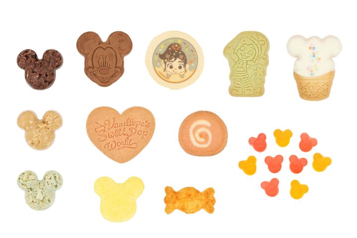 ミッキーシェイプのチョコレートやクッキー、ヴァネロペがプリントされたクッキー、キャンディーなど、バラエティ豊かなお菓子の中から好きなものを10個選んで詰め合わせることができます。