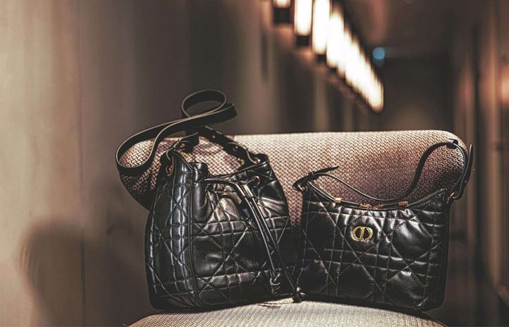 「マクロカナージュ」ステッチ入りラムスキンラムスキンを使用した、「D-Motion」のショルダーと、ロゴにときめく「カロ」のハンドバッグ。艶たっぷりな質感がコーデに輝きを与えます。立体的なキルティングとのミックスでより高級感満載な一品に。