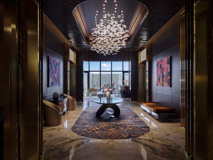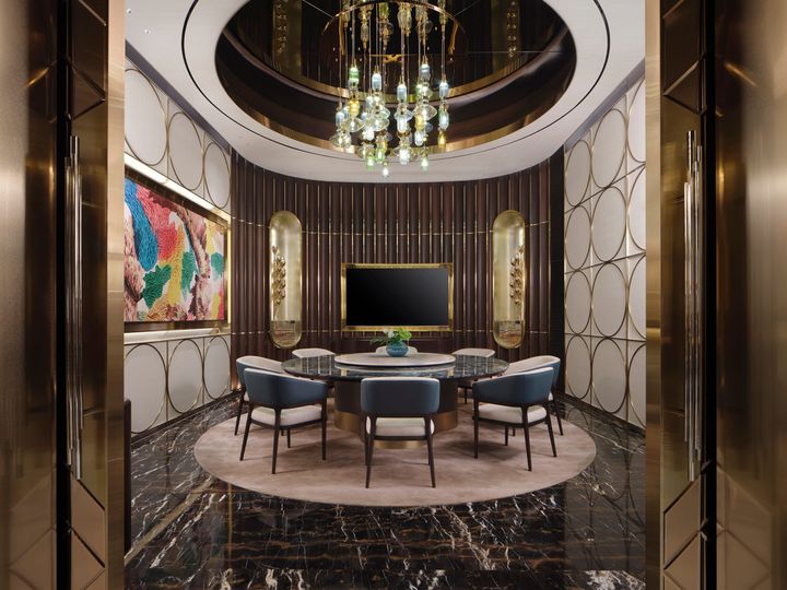 数ある客室の中でも最も"コリアンラグジュアリー"を体験できるのが「ヴィラ」タイプの客室。客室の広さは480~498㎡という破格の空間で、一歩足を踏み入れると別世界が広がる。このヴィラタイプの客室こそ、Netflix『脱出おひとり島』シーズン5で選ばれし男女がひと時を過ごす"天国島"として登場した部屋タイプだ。開放感のあるゴールドをポイントにあしらったリビングスペースには、光沢感のあるバーカウンターとゆったりとしたソファが設けられ、プライベートプールへと繋がる。24時間のバトラーサービスも完備しているので、思いのままに過ごせる。