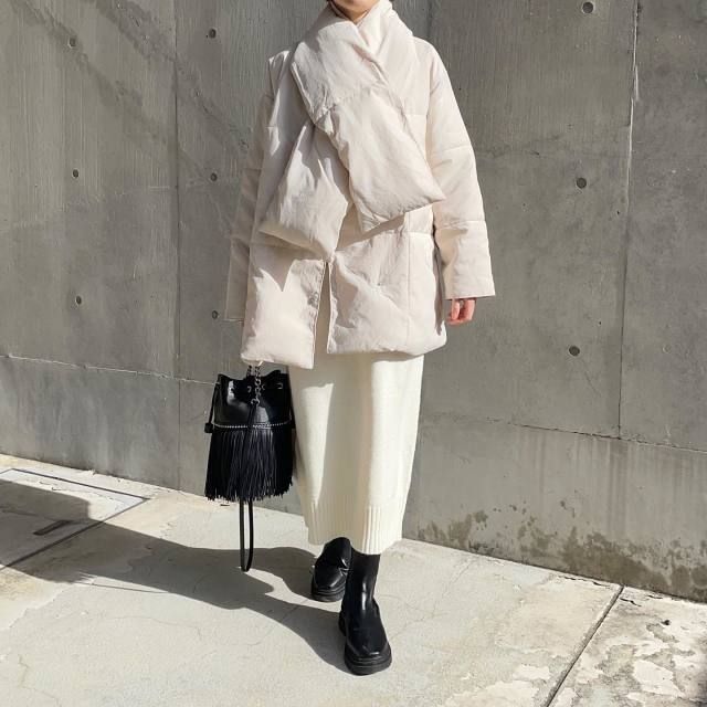 冷え込みが厳しい2月におすすめなのが「白のマフラー・ストール」。1点投入するだけで厚手のアウターやダークカラーニットのコーデがたちまちリフレッシュ。防寒性と明るい印象を兼ね備えているので、あたたかいのに春っぽいコーデに決まります。