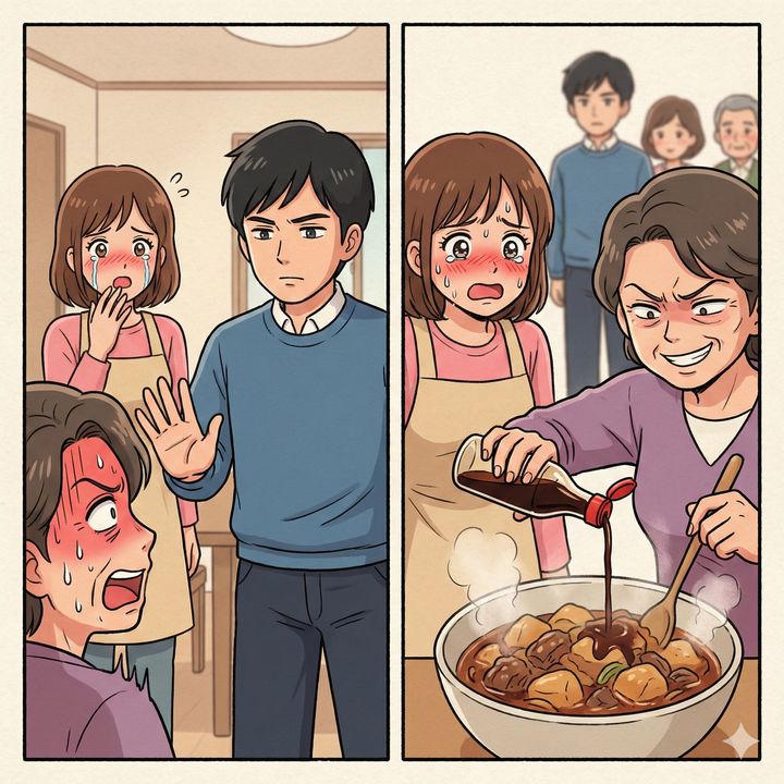「これくらいしないと、ご飯のおかずにならないわよ」 義母は勝ち誇ったような顔で、菜箸で乱暴にかき混ぜる。