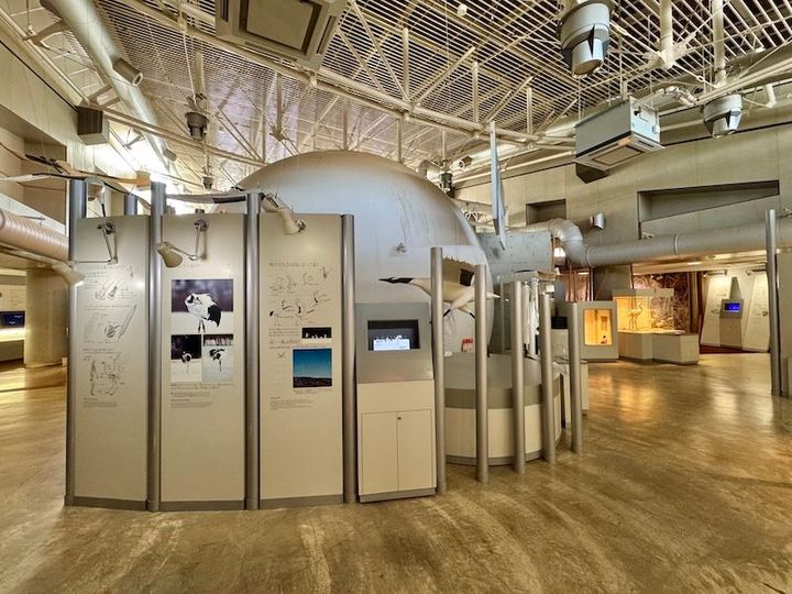 屋内の展示コーナー。タンチョウの生態や人との関わりについて、パネルや映像から学ぶことができます。