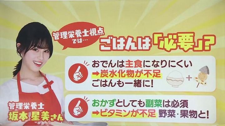 管理栄養士の坂本星美さんによりますと、おでんはたんぱく質や食物繊維を多く摂れる優秀な食事だそうです。その上でこんなアドバイスが!