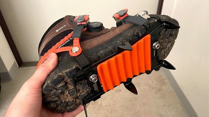 写真のものは6本ツメですが、本格的な冬山になると10~12本のツメがついたアイゼンを着用するなど、用途によって使い分けます。