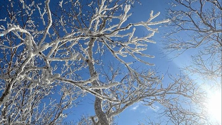 そして太陽のあたたかさを感じながら登ると、樹氷や雪原が…。