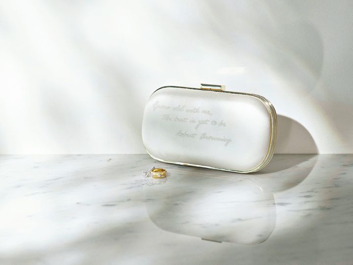 バッグは、"ともに年を重ねよう、最高の瞬間はこれから"という意味の刺繍入り。ストーリーのあるアイテムで気分を盛り上げて。