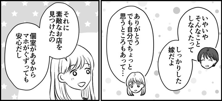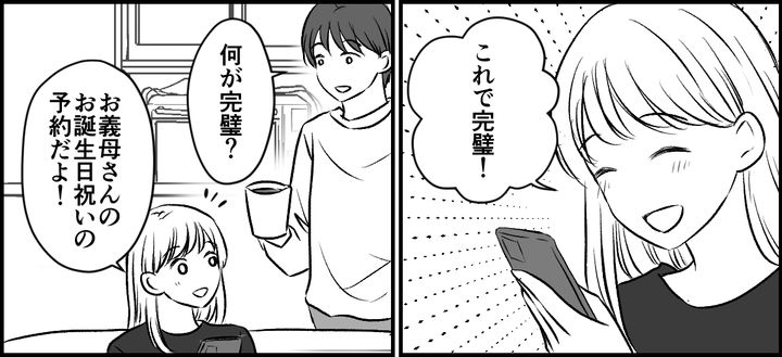 娘のマホもすっかり寝たあと、私はスマホを見つめながらポチポチと操作をしていました。「これで完璧!」私は義母のお誕生日祝いのレストランの予約をしていたのです。今回は、授かり婚で入籍してから迎える初めての義母の誕生日なのです。