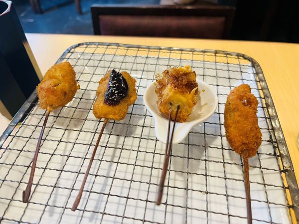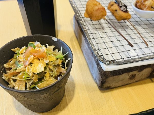 サラダは、コーンフレークのざっくりとした食感もあり、食べ応えがありました。 先にサラダを食べるか、それとも串を味わった後にするか。食べる順番を迷ってしまうほど、串揚げに心が躍ります。