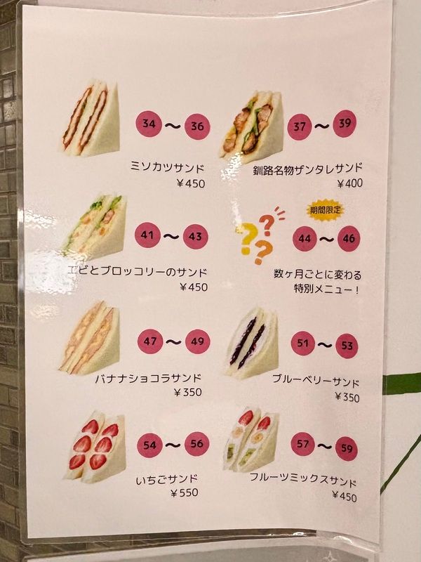 シーズンごとに変わる期間限定サンドイッチ