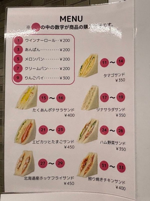 パンは5種類のうち4種類が200円、サンドイッチは350円~とあって、手に取りやすい価格がうれしいです◎