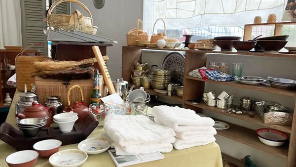 また、取材当日は台湾の雑貨が豊富でした。レトロかわいいビンテージもの、豚の貯金箱などたまりません…。 奥に見えるのは昔ながらの金物屋さんにあるような韓国の食器や鍋、カトラリーなど。