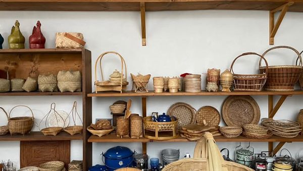 手づくりの力なのでしょうか、みんな素朴でなんだか温かい。部屋に飾ると優しい雰囲気になりそうです。大小いろいろな形があり、果物、食器、小物、リモコン類…何を入れようかと考えるのも楽しいですね。使い込むほどに色合いが深まり、手に馴染んでいく変化は、時間を共有しているような愛着を育ててくれそうで、長く使いたくなります。このほか、ピクニックしたくなるような大きな籠バッグも気になりました。