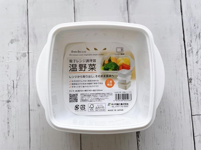 電子レンジで手軽に温野菜が作れる調理器。中子付きで蒸気がムラなく行き渡り、加熱後はそのまま食卓へ出せます。調理後はフタをして冷蔵庫保存も可能。時短調理&後片付けのラクさが魅力です。