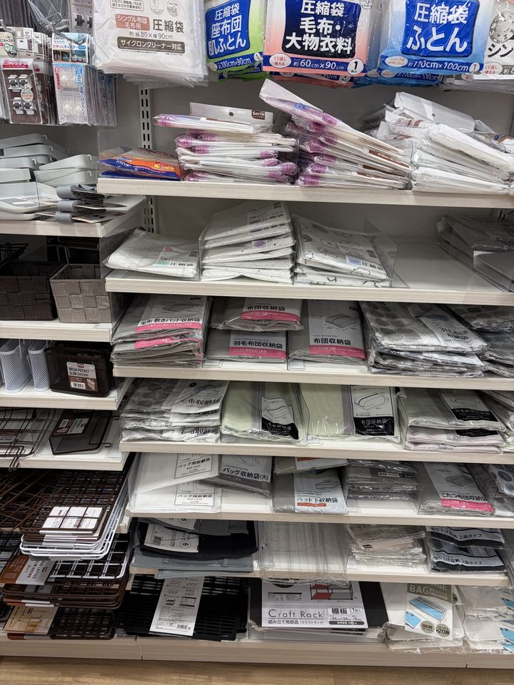 布団やバッグの収納袋、圧縮袋などが置かれているエリアの近くで見つけることができますよ。
