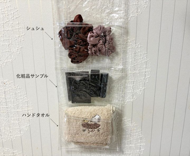 お風呂場付近に吊るして、ヘアゴムやストック品の置き場にするのもおすすめです。
