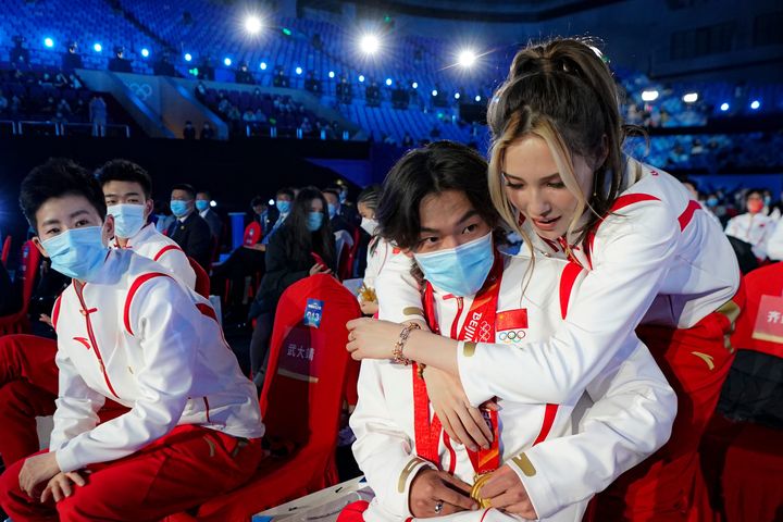 北京オリンピック後、2022年4月に行われたウィンタースポーツ・ガラでは、同じ中国代表メンバーで幼馴染でもあるスノーボード男子ビッグエアの金メダリスト、スー・イーミン(蘇翊鳴/通称シャオミン)にハグする姿をキャッチ。