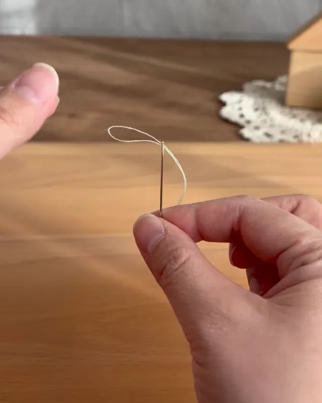 まず、適度な長さに糸を切ったら、輪っかを作って針に通しましょう。
