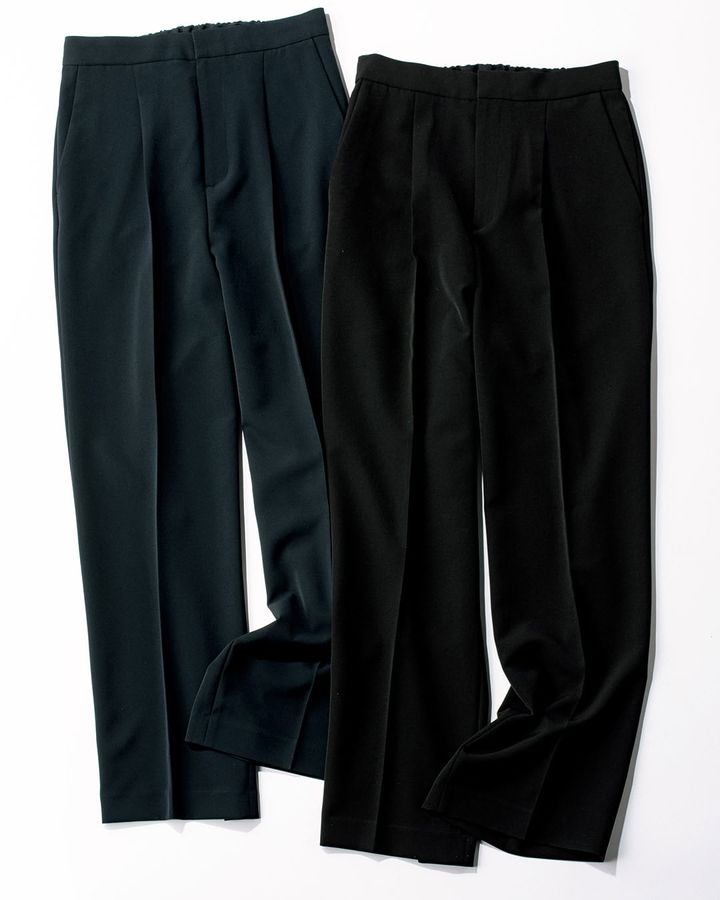 ②シーンレスに活躍!美脚を作る「タックパンツ」