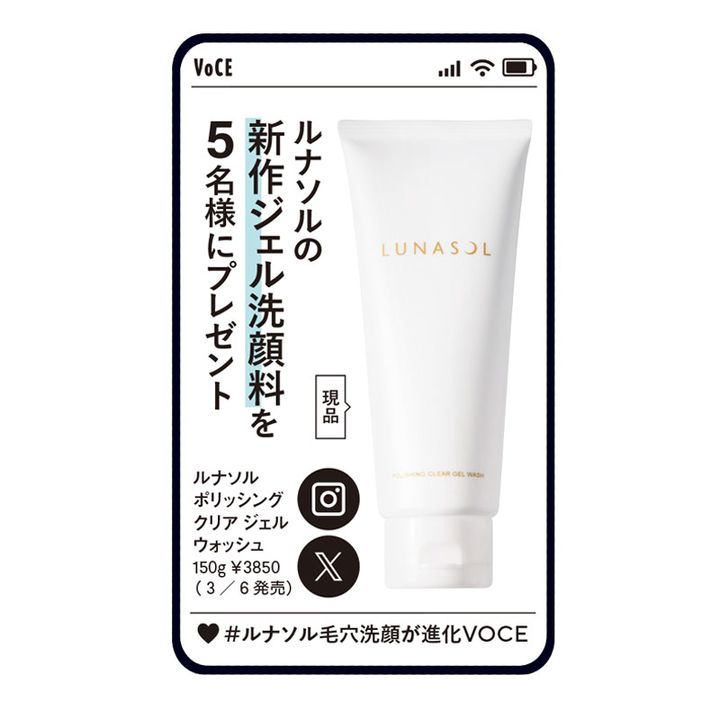 「ルナソル ポリッシングクリア ジェルウォッシュ(現品・3/6発売)」が当たるチャンス! 今回の付録の感想をXやインスタグラムに下の#タグをつけて投稿して、「現品プレゼント」キャンペーンにぜひご参加ください。