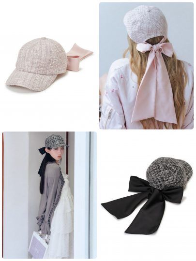 ツイードキャップのバックスタイルには光沢感のあるサテンリボンをトッピング。後ろ姿も抜かりなく、おしゃれをアピールできます!