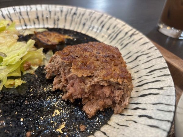 今回注文したのは、ランチメニューの「極ラムバーグ」です。名前からして食べたくなりますね。運ばれてきたラムバーグは、大判型でボリュームたっぷり。男性が特に好みそうな、「これぞハンバーグ」と言いたくなる見た目です。クセの出やすいラム肉ですが、上質さがしっかり伝わる味わいで、とても食べやすい一品でした。久しぶりにいただいたラム肉でしたが、その美味しさに思わず感動です。