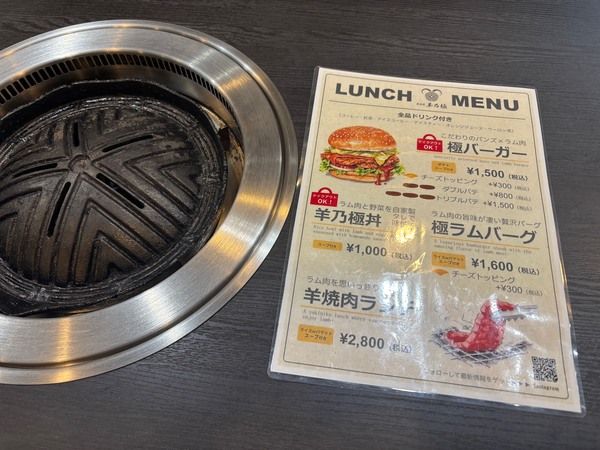 ランチメニューは、極バーガー、羊乃極丼、極ラムバーグ、羊焼き肉ランチがあり、どれも気になるラインアップです。