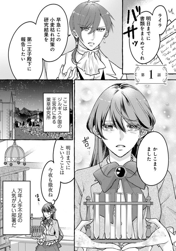 『虐げられた秀才令嬢と隣国の腹黒研究者様の甘やかな薬草実験室』(椎葉きのこ:漫画、琴乃葉:原作、さんど:キャラクター原案/主婦と生活社)第1回【全5回】