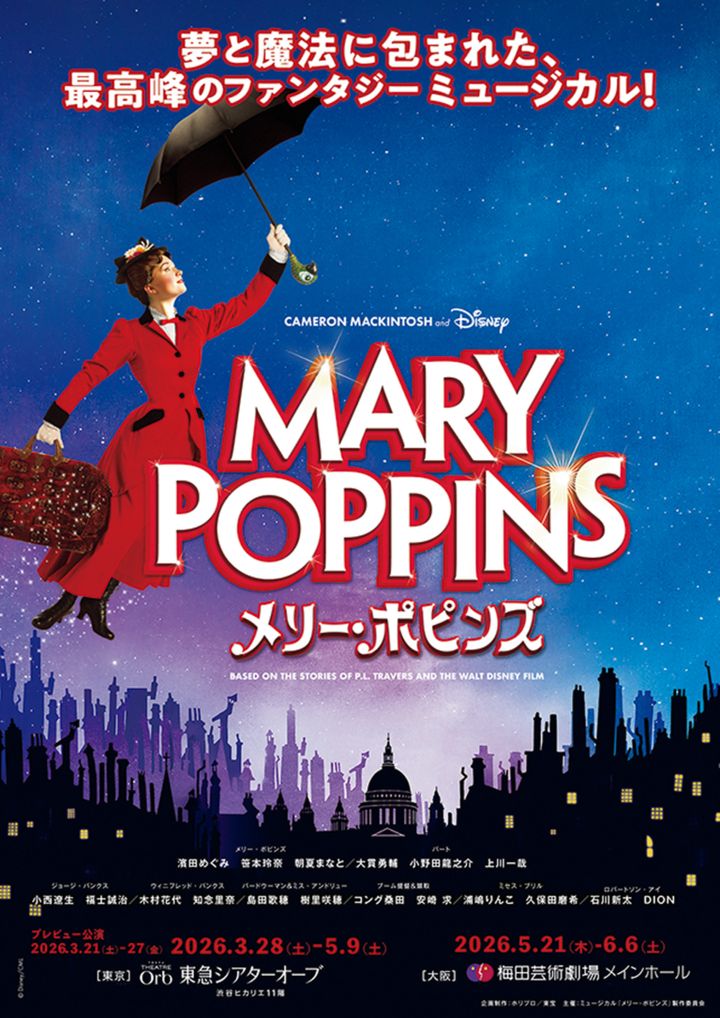 原作や映画同様、舞台として世界的に高い評価を得ているミュージカル『メリー・ポピンズ』が、2026年3 月から6 月にかけて、東京・大阪で上演されます。