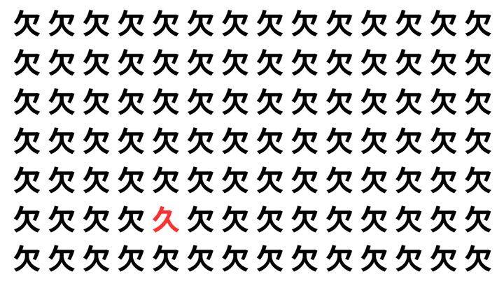 たくさんの「欠」の中に、よく似た別の漢字が1文字だけ隠れています。