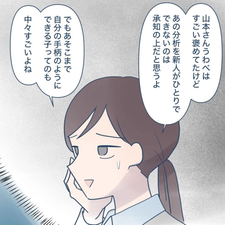 すると、「山本さん、うわべはすごい褒めてたけど、あの分析を新人が一人でできないのは承知の上だと思うよ。でも、あそこまで自分の手柄のようにできる子ってのも中々すごいよね」と藤澤さんが呆れた口ぶりで言いました。