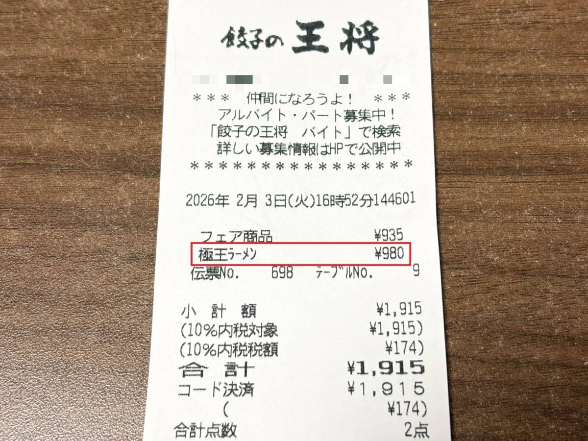 ◆餃子の王将 極王(ゴクオウ)餃子の王将ラーメン
