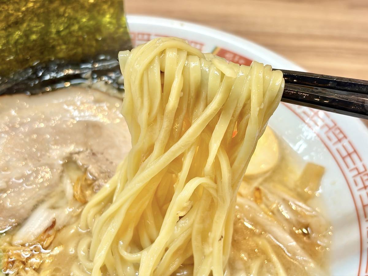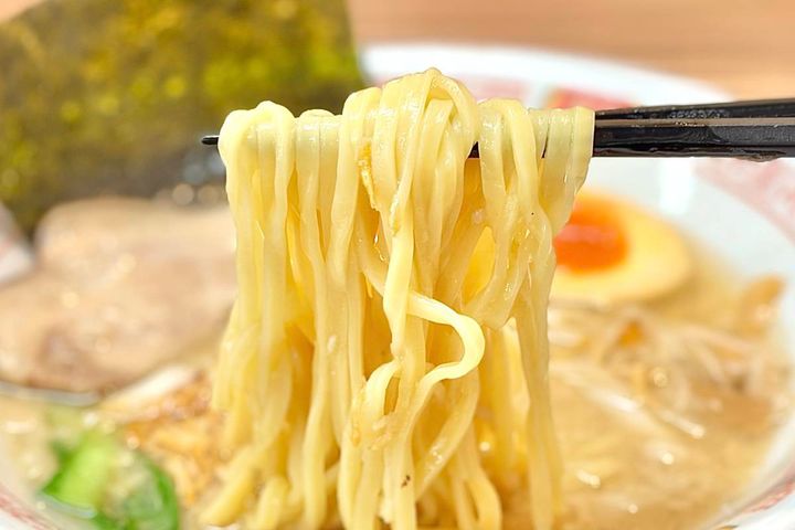 定番の餃子の王将ラーメンに鯖煮干しオイルをプラスした、コク深い味わいのスープ。