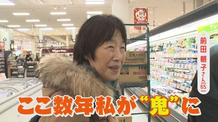 朝子さん:「節分もやりますね、お面被って毎年夫がお面をかぶっていたんですけど、ここ数年私が鬼に…きっと鬼に見えるんじゃないですか?あれおかしいな?去年までは夫が鬼だったのに…」