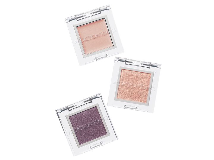 クリームカラーをまぶた全体に指でのせて、アイホールと目尻にベージュパールを指でオン。指の温度で密着させて、目のキワにはパープルパールをチップでスッとのせて色味を活かします。ニュアンスカラーで透明感アップ。上から:粉とびせずに時間が経ってもしっとり。ザ シングル アイシャドウ クリーム 001C、同 パール 007P、同 パール 012P 各 ¥2,530ケース別売り¥440(すべてアディクション ビューティ)
