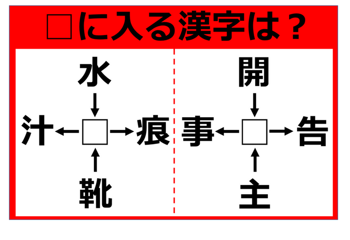 【漢字パズル】水□、□汁、靴□、□痕 □に入る漢字は何…!?