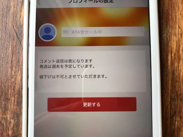 メルカリでは「ユーザー同士の値下げ交渉」が盛んに行われるので、もし値下げをする気がないならば、そのこともプロフィールに明記しておきましょう。「値下げ交渉には応じかねます」という一文があれば大丈夫です。