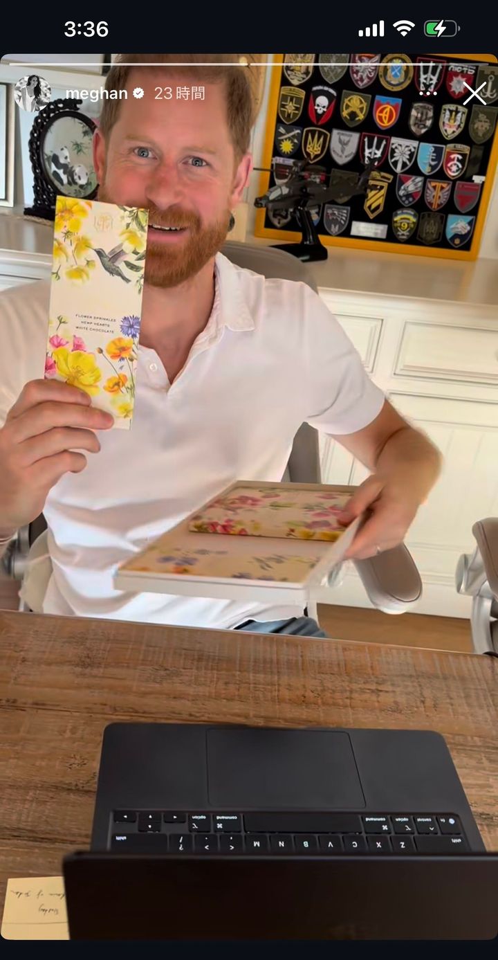 妃は今週インスタグラムのストーリーに動画をアップ。チョコレート4枚を箱に入れたセットを持って自宅内を移動するシーンを、妃目線でとっている。向かったのはヘンリー王子のオフィス。裸足でパソコンの前に座っている王子に箱を差し出すと、王子は「ありがとう」と笑顔で答えながら、チョコレートを1枚取る。王子がそれをカメラに向けると、妃は「ホワイトチョコレートね」と王子のセレクトを紹介する。王子は部屋を出ていく妃に「ありがとう、愛してるよ」と声をかける。
