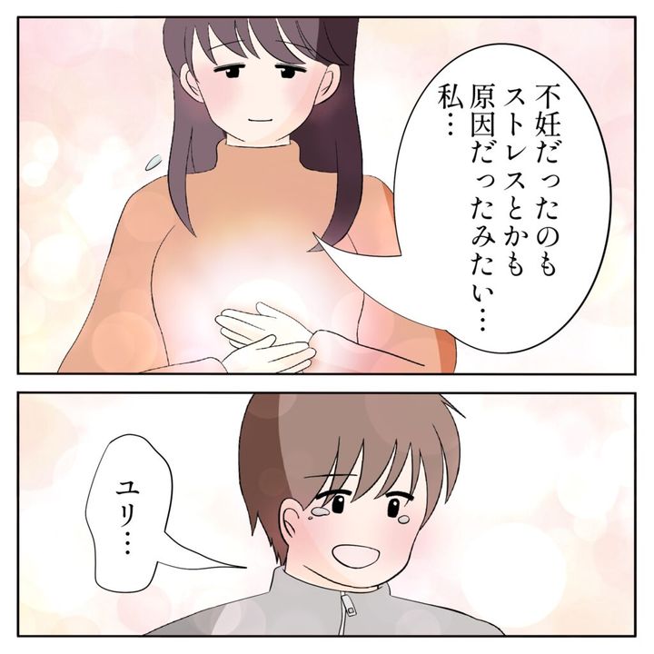 「不妊だったのも、ストレスとかも原因だったみたい・・私・・」と説明しながら、愛おしそうにお腹にそっと手を当てるユリ。子どもができなくてもユリと一緒になれればそれだけで幸せだと思っていたけれど・・妊娠の報告を聞いて言葉にならない嬉しさがこみ上げてきました。