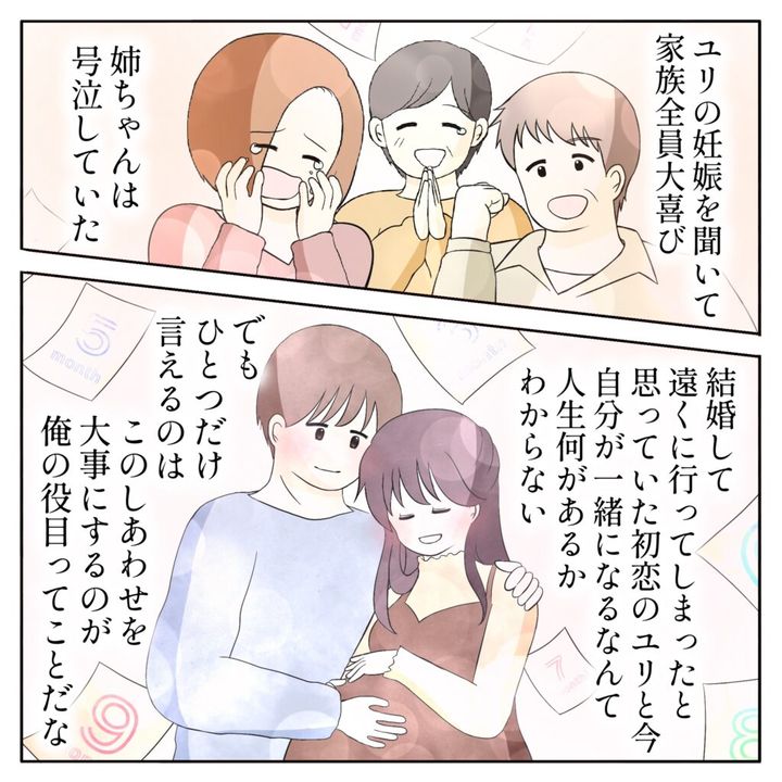 一度は諦めた初恋の相手と結ばれた公輔さん。再会したときは辛さを隠して必死に元気なふりをしていたユリさんが、今は公輔さんや家族に囲まれて本当に幸せそうです。傷ついたユリさんの姿を知っているからこそ、公輔さんは二度とユリさんに辛い思いはさせないと強く思っているのでしょうね。もうすぐ産まれてくる赤ちゃんとともに、これからも幸せな毎日が続きますように。