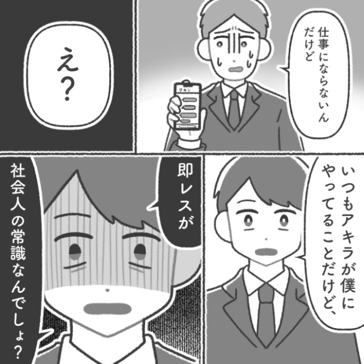 衝撃のエピソードを漫画化!今回は休みの日にも大量に連絡してきて即レスを求めてくる同僚のお話をご紹介します。
