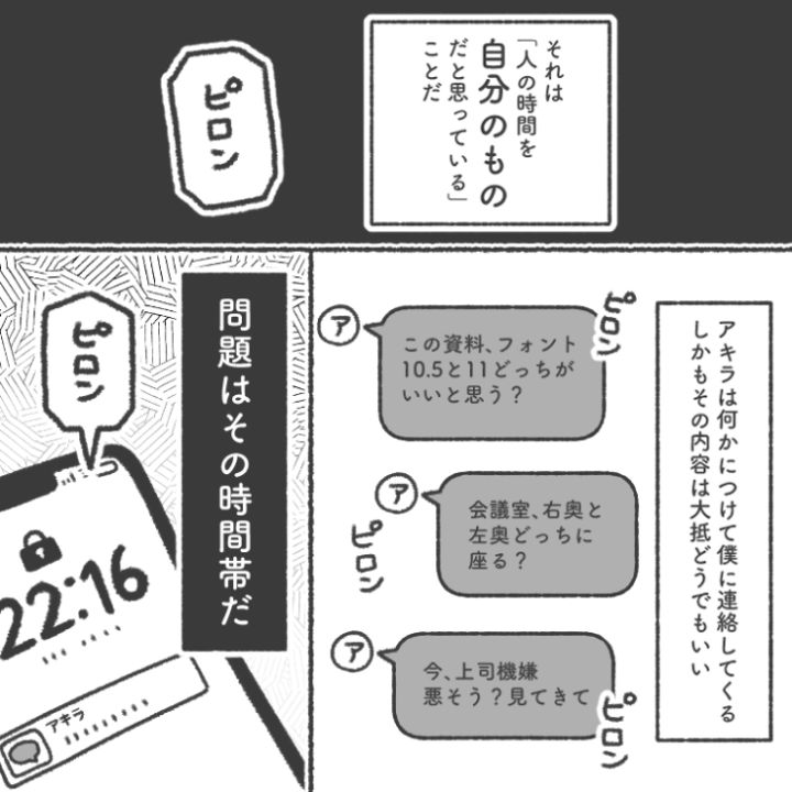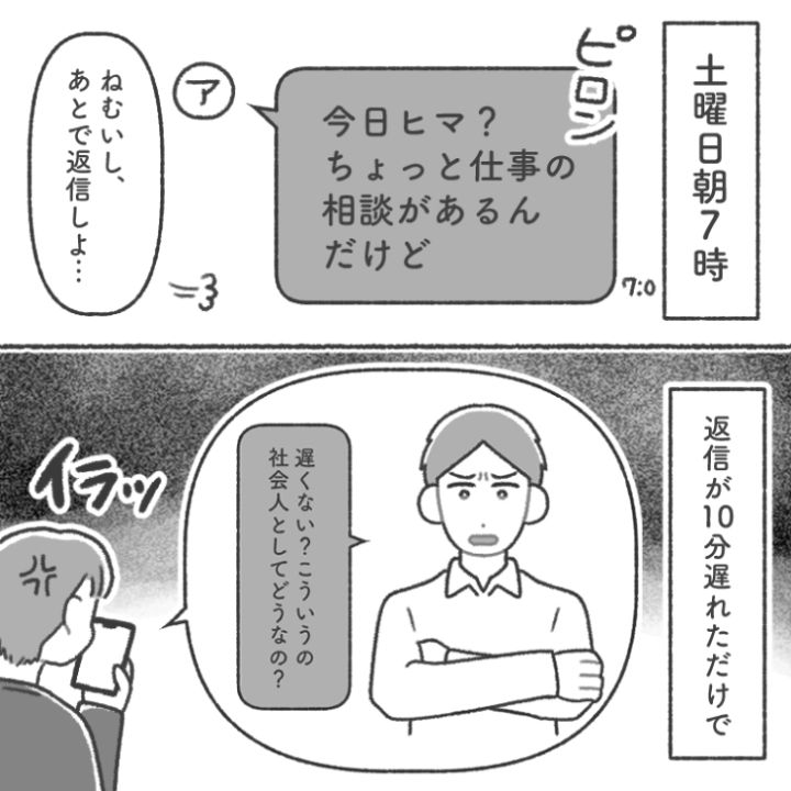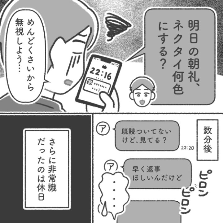 2. 「ネクタイの色どれがいいかな?」「返事ないけど非常識じゃない?」休みの日も即レスを強要してくる同僚!